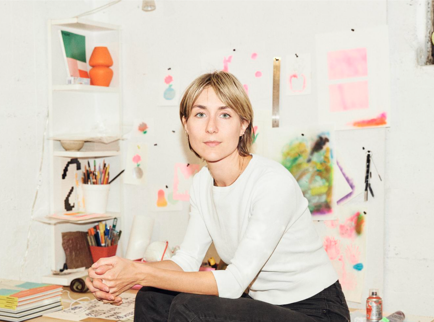 Romane Minner-Barrette—aka Romane MB —has dedicated herself to creating screen-printed sweaters for the brand Toujours Correct, which she co-founded with her sister Béatrice. Alongside screen printing, Romane pursues an artistic practice in illustration and animation projects for various clients. Since 2019, she has also managed a studio that welcomes several artists with diverse backgrounds, encouraging encounters and collective creation. In her work, she explores different materials, such as oil pastels, papier-mâché, and acrylic, which she also uses to create animations. She works instinctively, a bit of a jack-of-all-trades, often exploring what is raw, fresh, and alive.