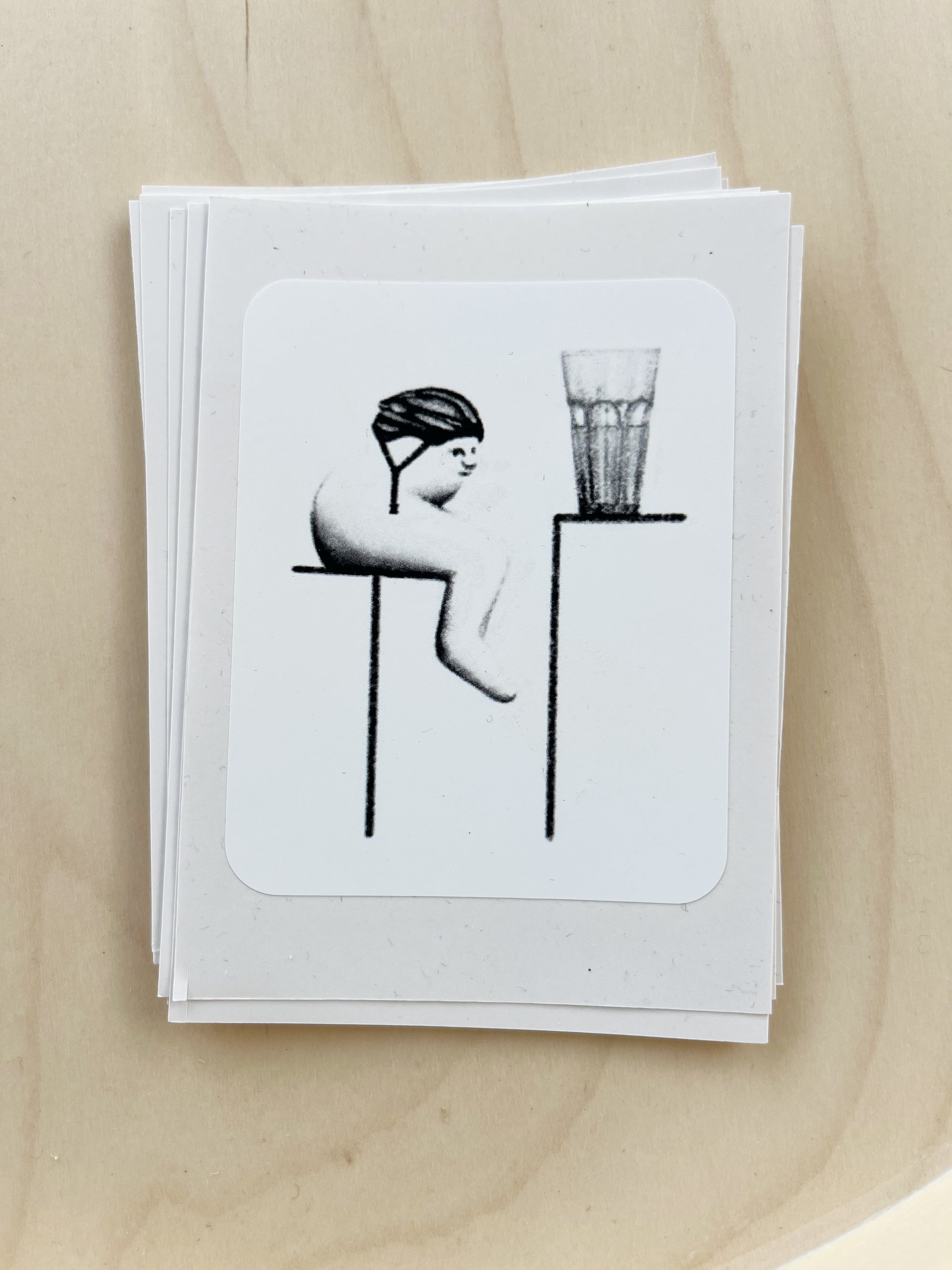 Sticker by Gabriel Sabourin, the illustrator in residence for the month of September 2025 at LEPORELLO.