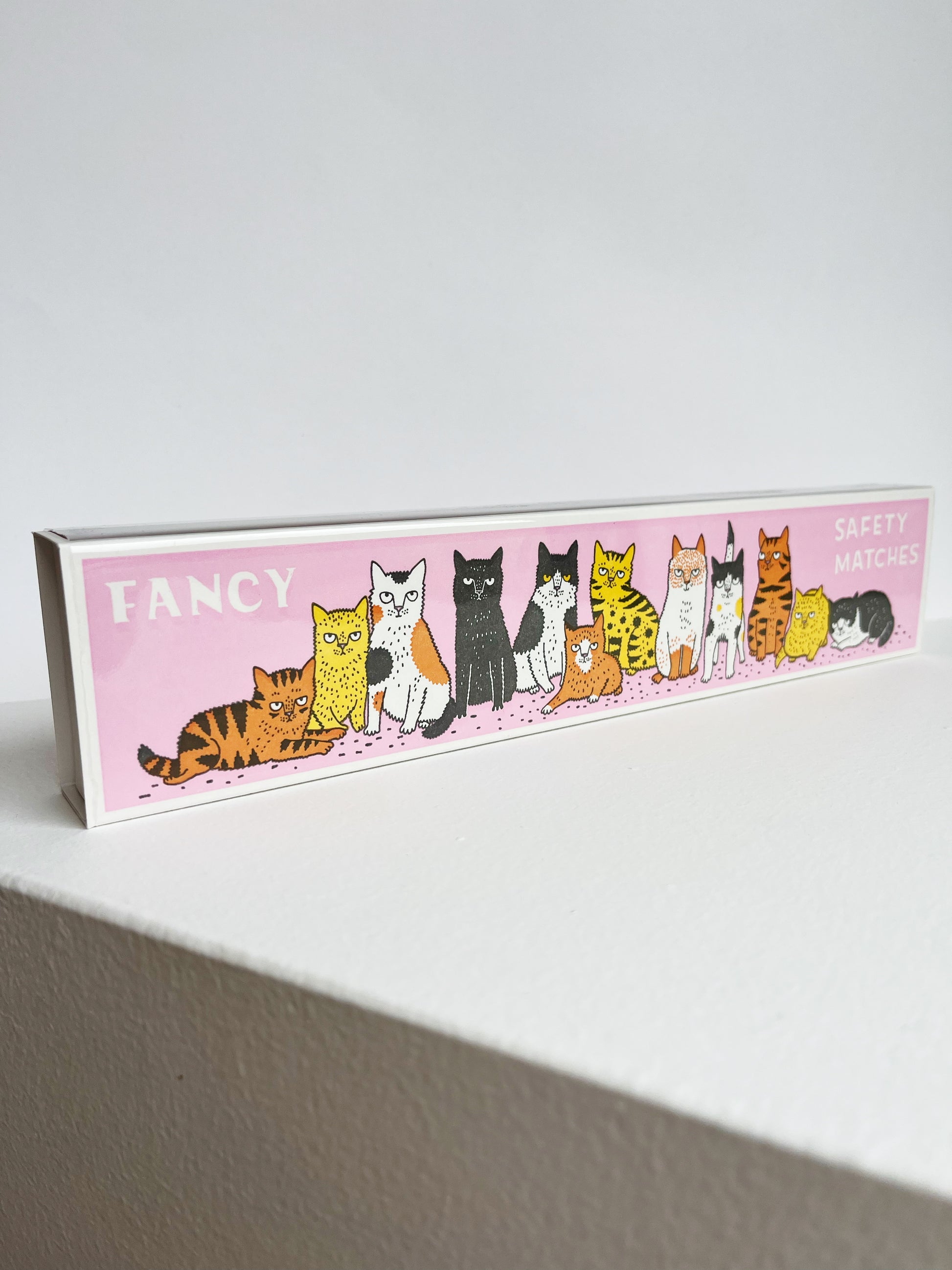 Mesurant 29 x 6 x 3 cm, les boîtes sont imprimées sur presse typographique, au Royaume-Uni. Elles contiennent 45 allumettes de 28 cm de long chacune, de couleur naturelle à extrémités blanches.